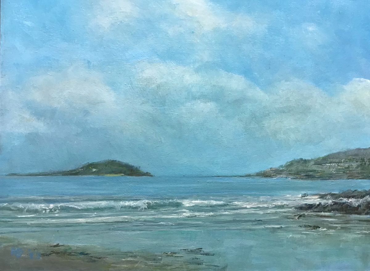 O 843 Porthcurnick Beach - from Portscatho - Cornwall - 10" x 12" Oils (2022)