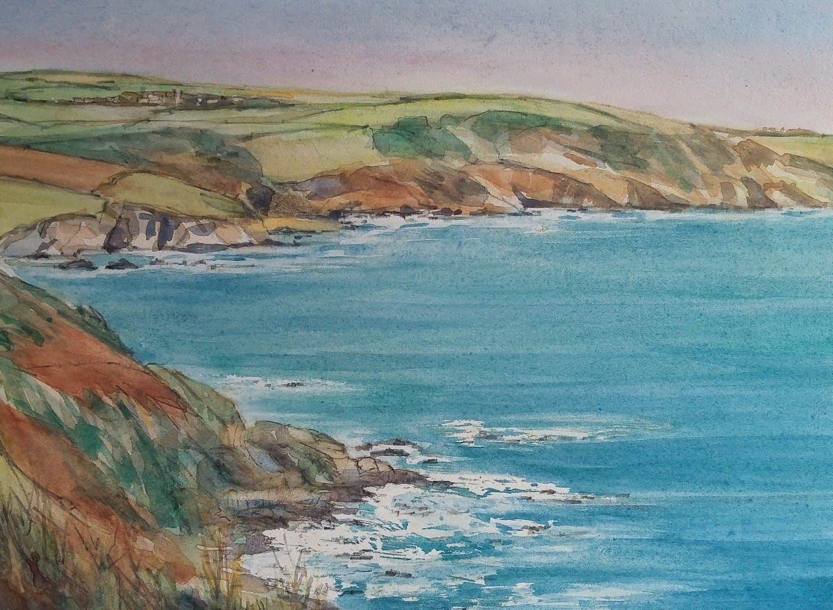 The headland provides stunning views in both directions. (I have also painted view to the West - towards Polruan - please see other listings)