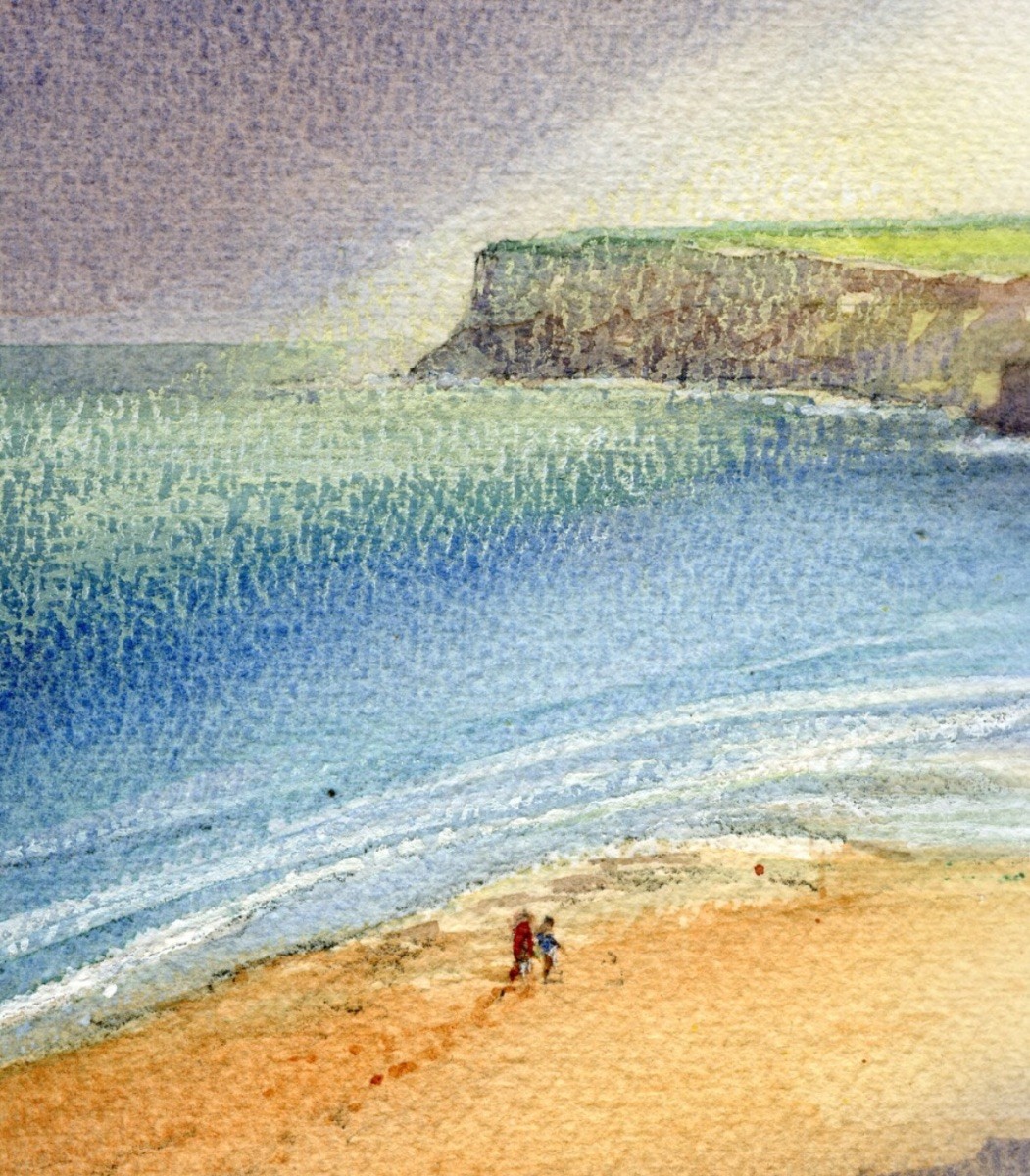 This watercolour was painted in 2002 and pastel has been used to highlight the shimmer of light on the sea.